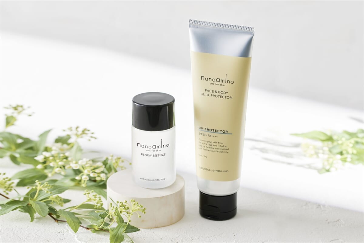 『ナノアミノ UVミルクプロテクター セラム フローラルデュー 70g』『ナノアミノ リニューエッセンス 30ml』