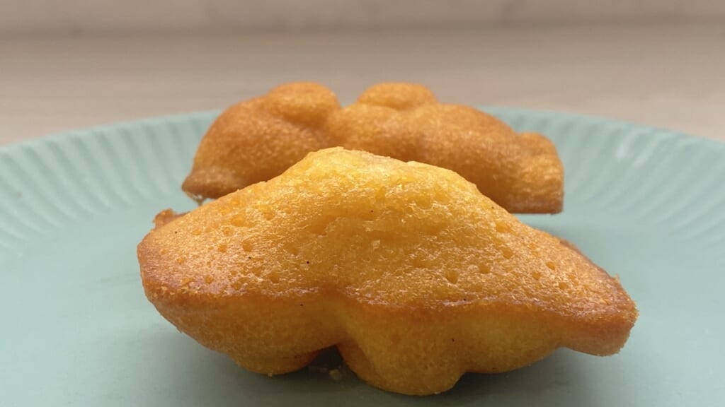 しっとり焼き上げられたマドレーヌの中には、北海道産ハチミツのゼリーが隠されていて、ジュワッとした食感と、凝縮されたハチミツの甘い香りを楽しめます。レモン果汁や果皮のさわやかさがいいメリハリです。