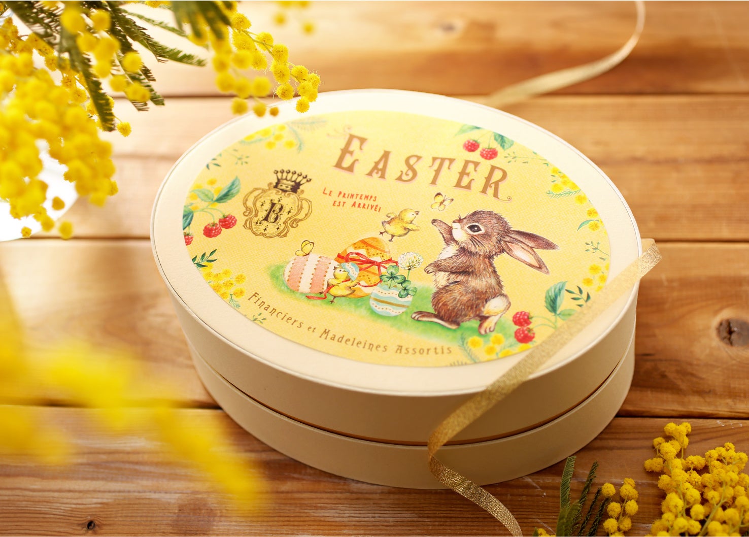フィナンシェ2種とマドレーヌをアソートしたボックスタイプのイースターギフトです。