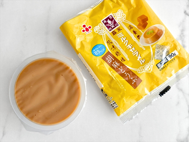 白ねりごま、森永キャラメルソース、牛乳、加糖練乳、生クリームを使用。森永ミルクキャラメルをイメージして仕上げられた胡麻どうふです。